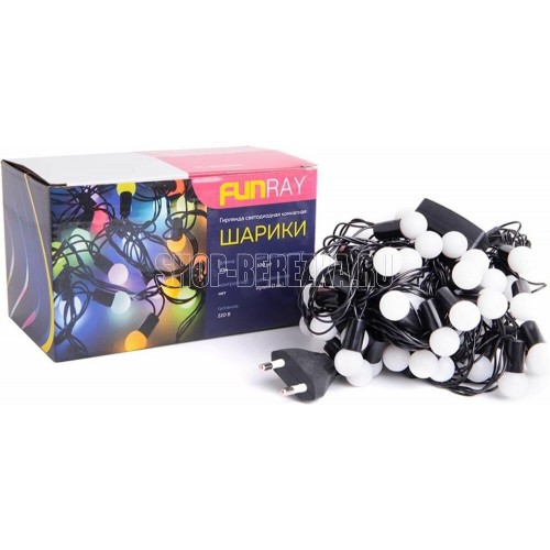 FUNRAY "Шарики" матовые BL-10100M, 100 LED, 10 м, мульти (7цв.),черный шнур,(18188)