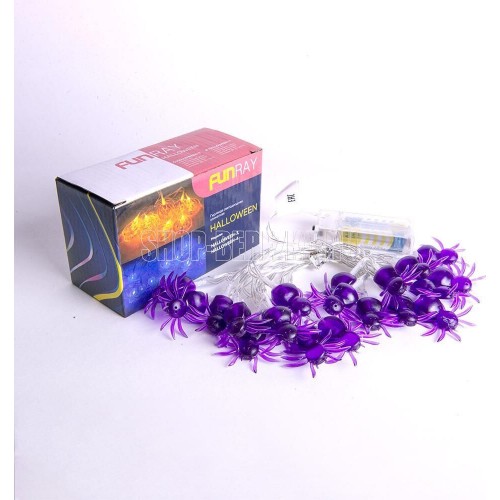 Хэллоуин не будет скучным Вместе с гирляндой в форме пауков Гирлянда «HALLOWEEN» выполнена в виде пауков, которые светятся фиолетовым цветом. Длина гирлянды - 3 метра, на которых расположились 20 светодиодов. Работают пауки от батареек. Гирлянда «HALLOWEEN» отлично подойдет для тематических вечеринок и украшения пространства.
