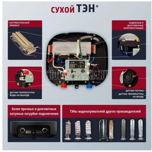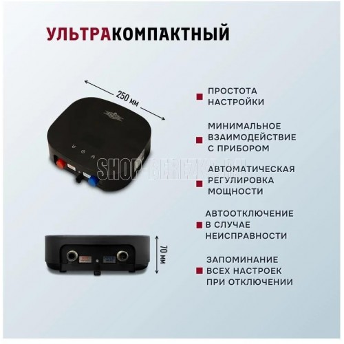 Технические характеристики Резьба для подключения воды 1/2 дюйма Мощность 5.5 кВт Напряжение сети 220(230) В Высота 230 мм Глубина 70 мм Ширина 250 мм Мах тем-ра нагрева воды 55 °С Управление сенсорное Самодиагностика да Цвет черный Защита от перегрева есть Производительность 5 л/мин Ограничение температуры нагрева есть Тип ТЭНа сухой Наличие сетевой вилки нет Установка вертикальная Способ крепления настенный Антизамерзание нет Форма прямоугольная Серия THERMA Габариты без упаковки 250х230х70 мм Вес нетто 3 кг Степень защиты от воды IPX4 IP Дисплей есть Индикация включения есть Способ подачи воды напорный Подводка нижняя