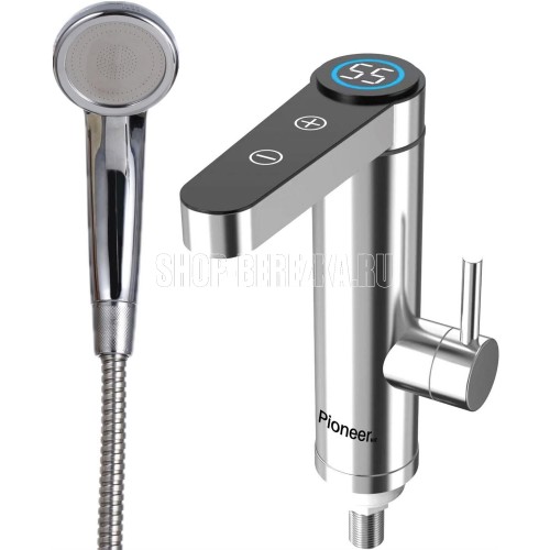 Проточный водонагреватель - смеситель С ДУШЕМ. Цифровой дисплей; Постоянный контроль температуры 30–55 °C; Корпус и ручка из нержавеющей стали; Напряжение питания: 220–240 В; Частота питания: : 50 Гц (60 Гц); Номинальная мощность: 3–3,6 кВт; Расход горячей воды: 2–2,5 л/мин; Рабочее давление: 0,04–0,6 МПа; Температура горячей воды: 30–60 °C; Степень водонепроницаемости: IPx4; Скорость потока воды: от 1 до 4 объемов в час; Длина кабеля питания: 1,5 метра