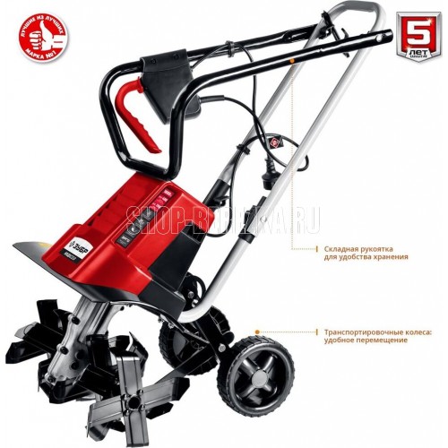 Cошник. Глубина вспашки, мм200. Тип редуктора червячный. Ширина вспашки, мм400. Число скоростей 1 вперед. Тип двигателя электрический, синхронный. Мощность, Вт1800. Масса изделия, кг11.6. Масса в упаковке, кг13.5. Габариты, см41x44x133. Колеса для перемещения.