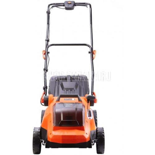 Ширина скашивания, см 38 Высота скашивания, мм 25-75 Количество режимов регулировки высоты 6 Объем травосборника, л 30 Рекомендуемая площадь обработки, м? 400 Тип двигателя щеточный Макс. частота вращения ножей, об/мин 3000 Напряжение аккумулятора, В 40 (2*21) Емкость аккумулятора, А*ч 4,0 Тип аккумулятора Li-ion Аккумулятор и ЗУ в комплекте нет Выброс травы травосборник/мульчирование Заглушка для мульчирования есть Самоходная (привод на колесах) нет Регулировка высоты скашивания центральная Материал травосборника пластик/ткань Материал деки пластик Диаметр колес (передние/задние), мм 160/200 Конструкция колесной пары без подшипников Регулировка скорости нет Индикатор наполнения травосборника есть Штуцер для промывки деки нет Панель с подставкой под стакан нет Ручка для транспортировки есть Складная рукоятка есть Уровень шума при работе, дБ 92