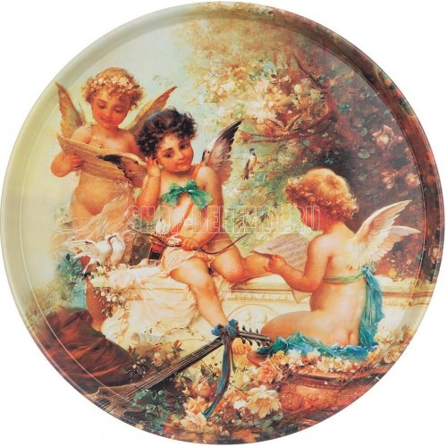 Поднос - это необходимый предмет для организации сервировки стола. Поднос имеет оптимальную круглую форму диаметром 33 см и удобные для переноса содержимого приподнятые стенки высотой 2,1 см. Коллекционный дизайн "АНГЕЛЫ" создает уютную атмосферу в интерьере. Благодаря глянцевой поверхности, поднос неприхотлив в уходе достаточно протереть влажной тряпкой. ТМ AGNESS отличный выбор Многокрасочная (полноцветная) литография выполняется на двухцветной машине. Машина оборудована уникальной системой компьютерного управления подачей краски. Для печати на листовой жести используются специальные УФ-краски и расходные материалы ведущих европейских производителей. Автоматический баланс вода-краска, качественный раскат краски, точная подводка листа, возможность печати четких растровых точек позволяют достичь самого высокого уровня печати.