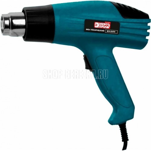 Напряжение питания: 230 В. Частота тока: 50 Гц. Мощность: 2000 Вт. Регулировка температуры 350 °C (I), 550 °C (II). Воздушный поток 300 л/мин (I), 500 л/мин (II). Масса: 0,8 кг.
