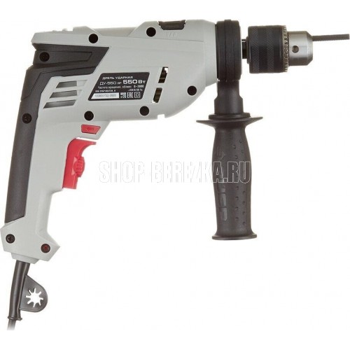 Мощность, Вт 550 Макс. число оборотов холостого хода, об/мин 0-3000 Частота ударов, уд/мин 0-48000 Макс. диаметр сверления (дерево), мм 20 Макс. диаметр сверления (металл), мм 10 Макс. диаметр сверления (бетон), мм 10 Тип патрона клю че вой Диаметр патрона, мм 1.5-13 Посадка патрона, дюйм 1/2 Режимы работы свер ле ни е/ свер ле ние с уда ром Количество скоростей работы 1 Реверс есть Электронная регулировка частоты вращения есть Фиксация кнопки включения есть Ограничитель глубины сверления есть Дополнительная рукоятка есть Диаметр шейки под рукоятку, мм 43 Длина кабеля, м 2