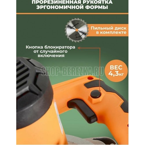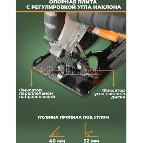 Класс товара Бытовой. Мощность, Вт 1200. Диаметр, мм 160. Посадочный диаметр диска, мм 20. Регулировка оборотов нет. Max глубина пропила под углом 90°, мм 52. Плавный пуск нет. Поддержание постоянных оборотов под нагрузкой нет. Длина кабеля, м 2. Мини-пила нет. Наличие патрубка для подключения пылесоса нет. Возможность работы с направляющей шиной есть. Вес нетто, кг 4,3. Габариты без упаковки, мм 502х315х510. Число оборотов, об/мин 5500. Max глубина пропила под углом 45°, мм 40.