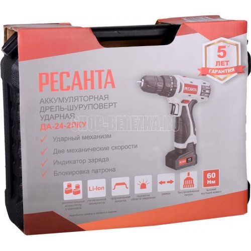 РЕСАНТА ДА-24-2ЛК 24В, 2аккум., кейс 75/14/7