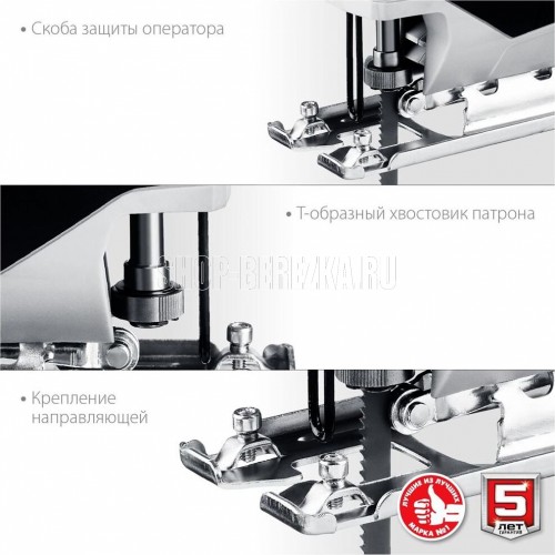 Мощность, Вт 400 Частота ходов пилки, ход/мин 0-3000 Ход пилки, мм 18 Макс. толщина пропила (дерево), мм 55 Макс. толщина пропила (металл), мм 6 Макс. толщина пропила (цветной металл), мм 10 Тип патрона пилкодержателя Т-об раз ный Быстрозажимной патрон Электронная регулировка оборотов Поддержание постоянных оборотов под нагрузкой Возможность подключения пылесоса Диаметр патрубка (внутренний/наружный), мм 22/27 Защитный экран Форма рукоятки ско бо вид ная Длина кабеля, м 2