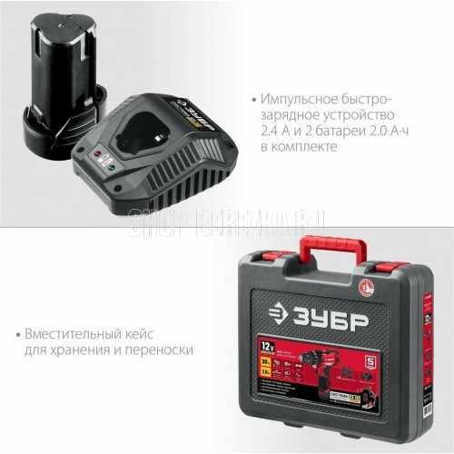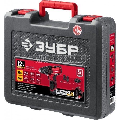 ЗУБР ДШЛ-125-22 12В, 2 АКБ (2Ач), в кейсе