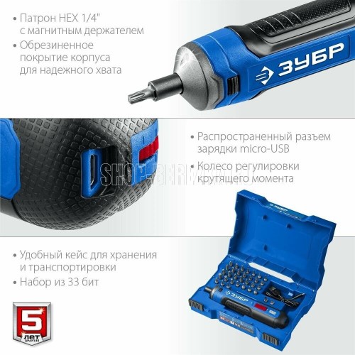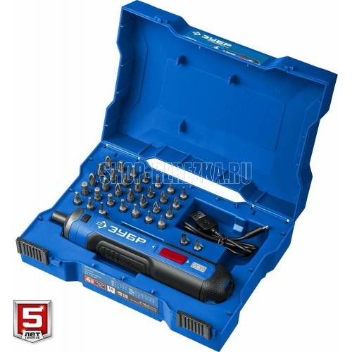 ЗУБР PSD-4S 3,6В, в кейсе с набором 33 бит