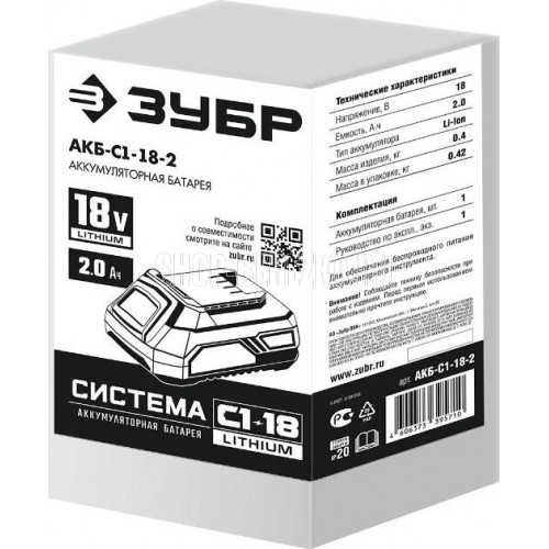 Аккумуляторная система С1-18 Тип аккумулятора Li-Ion Тип ячеек 18650 Напряжение, В 18 Емкость, А*ч 2 Защита от перегрева есть Защита от перенапряжения есть Защита от глубокого разряда есть Кол-во циклов заряда/разряда, цикл не ме нее 500 Зарядка на бзу есть Габариты, см 9х5х13 Масса изделия, кг 0.42