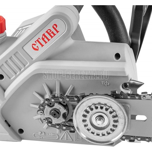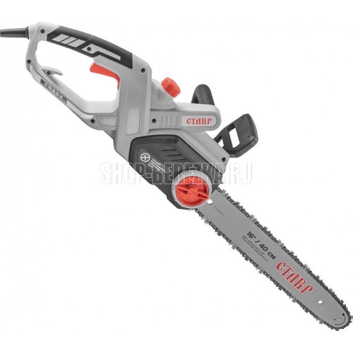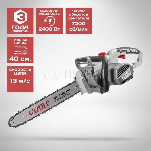 Пила цепная ЭЛЕКТРИЧЕСКАЯ, 2400 Вт, шина 40см, поперечное расположение мотора, 7000об/мин, скорость движения цепи 13 м/с, цепь 16 3/8 0,050 57 звеньев, тормоз цепи, система бесключевого натяжения цепи, автоматическая смазка цепи, плавный пуск, коробка