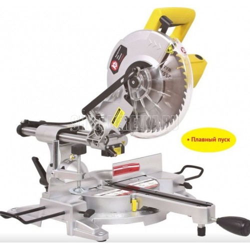 КАЛИБР ПТЭ-1900/255ПРм Пила торцевая электрическая Калибр Мастер Пила торцевая (торцовочная) электрическая Калибр ПТЭ-1900/255ПРм предназначена для выполнения прямых, боковых и косых распилов и резов в древесине, ДСП, ДВП, пластмассах. Заготовка на рабочем столе может быть повёрнута на угол от 0 до 45° за счёт поворотного основания. На основной рукоятке пилы расположены: рычаг блокировки защитного кожуха и клавиша выключателя. Потребляемая мощность 1900 Вт Пильный диск, диаметр наружный/внутренний 255х30 мм Число оборотов 5000 об/мин Тип двигателя однофазный коллекторный Тип передачи зубчатая Наклон режущего блока влево/вправо 0-45/- гр. Регулировка рабочего стола (поворотного основания) влево/ вправо 0-45/0-45 гр. Максимальные размеры пропила заготовки: толщина х ширина Поперечное пиление (900х00) 72х300 мм Косое пиление (900 х поворот 450) 72х200 мм Наклонное пиление (наклон 450 х 00) 40х300 мм Комбинированное пиление (наклон 450 х поворот 450) 40х200 мм