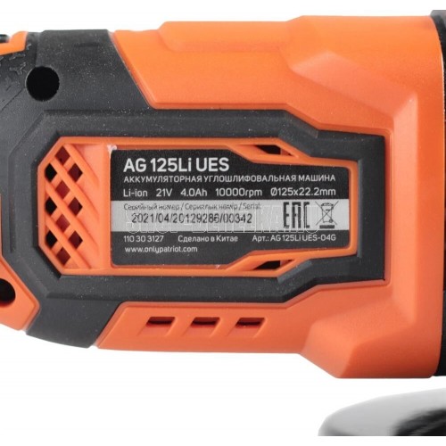 PATRIOT 110303125 AG 125LI UES Машина аккумуляторная бесщёточная (УШМ)