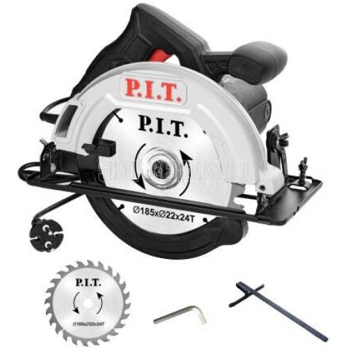 P.I.T. Пила циркулярная электрич. PKS185-C4 (1200Вт, 5500об/мин, диск 185х20мм, пропил 47/61мм, 45°)