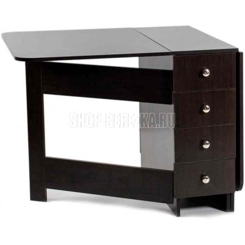 Стол книжка 2-стильный и современный обеденный стол. Ламинированная столешница не подвержена воздействию влаги. Важным преимуществом этой модели стола-трансформера является наличие вместительных ящиков. В сложенном состоянии стол займёт совсем не много места, и может послужить в качестве комода или тумбы с ящиками. Функциональное исполенние стола книжки. В среднюю часть стола с одной стороны добавлены четыре выдвижных ящика, с другой стороны тумба с дверкой. Столешница закромлена герметично кромкой ПВХ-1 мм. В целях безопасности и придания лучшего эстетического вида углы столешницы закруглены. Размер Ш х Г х В 350 (1600)х805х750. Габариты высота: 750 мм. Габариты ширина: 350(1600) мм. Габариты глубина: 805 мм. Стиль: Современный. Материал каркаса: ЛДСП. Материал фасада: ЛДСП. Поверхность: ЛДСП. Раскладной: да. Производитель: Бител. Цвет корпуса: венге. Суммарный объем упаковки: 0,1 куб.м.