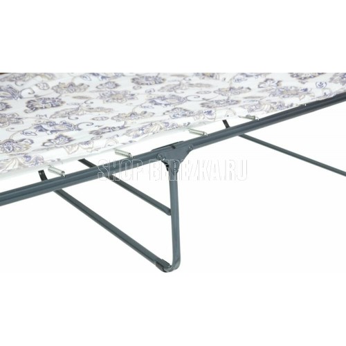 Габаритные размеры изделия (длина х ширина х высота), мм : 1970х733х350. Максимальная нагрузка: 120 кг. Каркас: основание - каркаса труба стальная ф25х1,0; опоры - труба стальная ф19х1,0; полимерное покрытие; пружина. Матрас: ткань 45% п/э – 55% хлопок, плотность 108 – 111 г/м2, ткань полипропиленовая, наполнитель матраса поролон листовой (толщиной – 10мм), крепление к каркасу осуществляется с помощью пружин. Регулирование подголовника: 4 положения. Размер упаковки (длина х ширина х высота), мм : 760х131х850. Вид упаковки: термоусадочная пленка, картон гофрированный. Вес изделия: нетто, кг – 8,3.