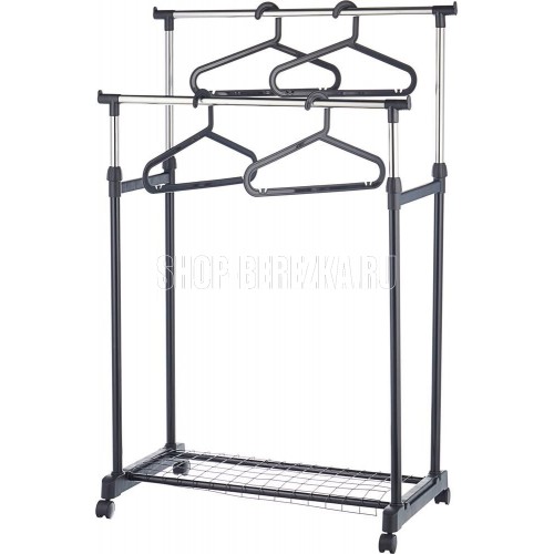 Вешалка напольная GR-03A (2перекладины, с сеткой внизу ), размер: 75*42*90-160см Материал: нерж.сталь, пластик Предназначена для удобства хранения одежды, сохраняет вещи в идеальном состоянии. Выдерживает нагрузку до 25 кг 2перекладины, с сеткой внизу Регулировка высоты перекладины Простота сборки Вешалка напольная GR-03A (2 перекладины, с сеткой внизу), размер: 75*42*90-160см, аналог 311404