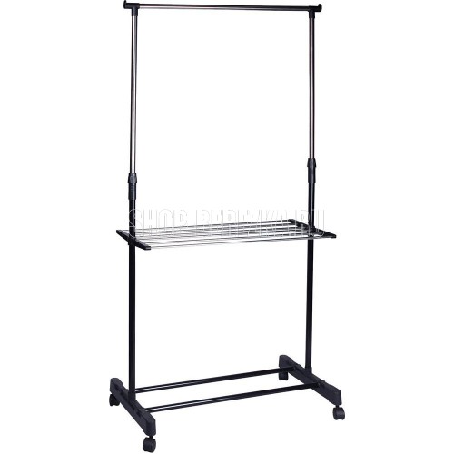 Вешалка напольная на колёсах (с полкой) CR460, размер: 80*42*95-168см Предназначена для удобства хранения одежды, сохраняет ваши вещи в идеальном состоянии. - Размеры: 80*42*95-168см; Диаметр трубок 22/25/19 мм - Материал: нержавеющая сталь, окрашенный металл, пластик - Выдерживает нагрузку до 13 кг - Высота перекладины регулируется - Простота сборки, дополнительный комплект деталей пластиковых соединений