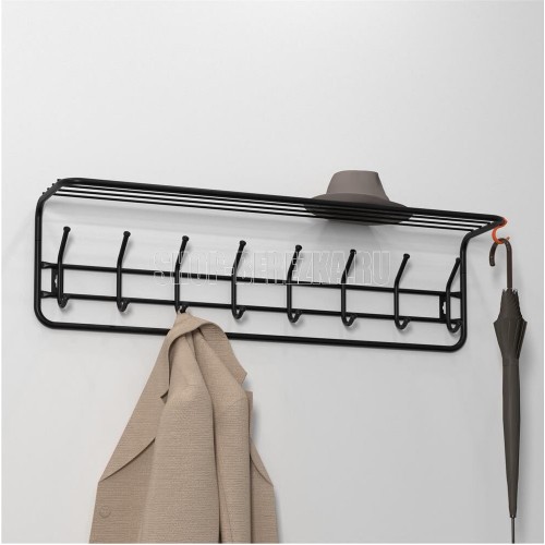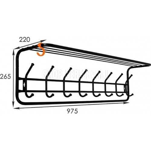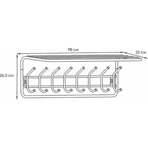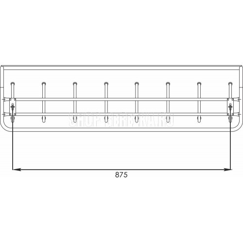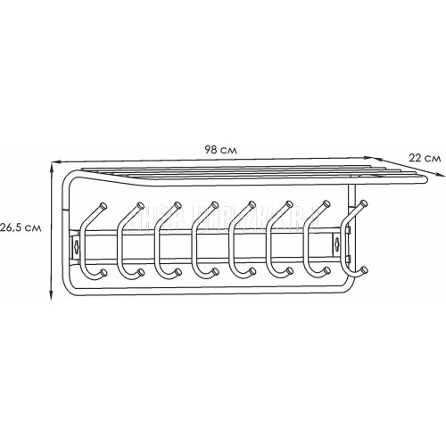Материал — Сталь, полимерное покрытие. Индивидуальная упаковка — 1050х230х100 мм. Габариты (Д*Ш*В) — 98х22х26,5 см. Максимальная нагрузка, кг — до 5 кг на крючок.