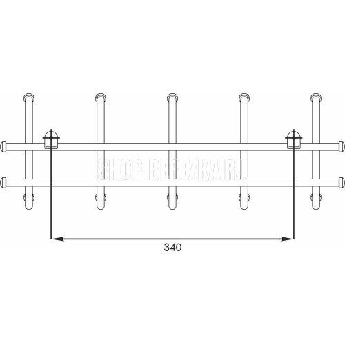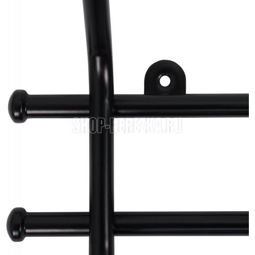 Материал — Сталь, полимерное покрытие, пластик. Габариты (Д*Ш*В) — 48х8х16,5 см. Максимальная нагрузка, кг — до 7 кг на крючок.