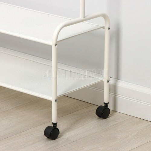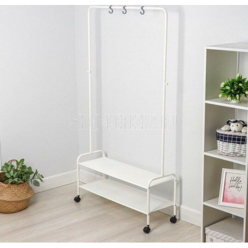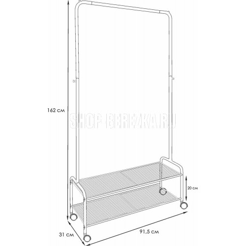 Назначение Для размещения одежды. Материал Труба диаметром 18 мм, стальные шарики; пластиковые подпятники, полимерно-порошковое покрытие, пластик. Габариты (Д*Ш*В) 91,5х31х162 см. Максимальная нагрузка, кг до 20 кг.