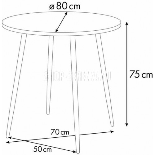 Стол Polini Home London – это современное и удобное решение для обеденной зоны, идеально подходящее даже для небольшого помещения. Изделие поможет создать теплую и уютную атмосферу как для общения, так и для приема пищи, а также за ним с легкостью разместятся несколько гостей или членов семьи. Благодаря стильному конструктивному дизайну и трендовым цветовым сочетаниям модель гармонично впишется в любой интерьер комнаты. Столешница произведена из высококачественной ЛДСП толщиной 22 мм и облицована противоударной ПВХ кромкой 2 мм. Диаметр столешницы – 80 см. Благодаря круглой форме и размерам модель является достаточно компактной, поэтому ее также можно использовать в зоне для отдыха, на террасе или беседке, но при этом свой функционал она не трачивает: все необходимые столовые приборы удобно разместятся на поверхности. Опоры выполнены из металла толщиной 3,2 мм, являются прочными, надежными и обеспечивают устойчивое положение стола. Ножки покрыты гипоаллергенной порошковой краской, защищающей металл от коррози