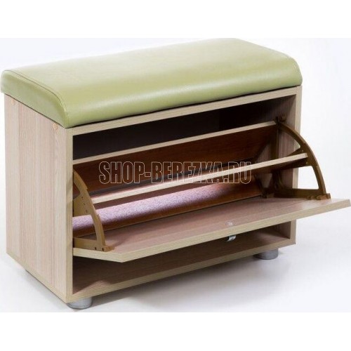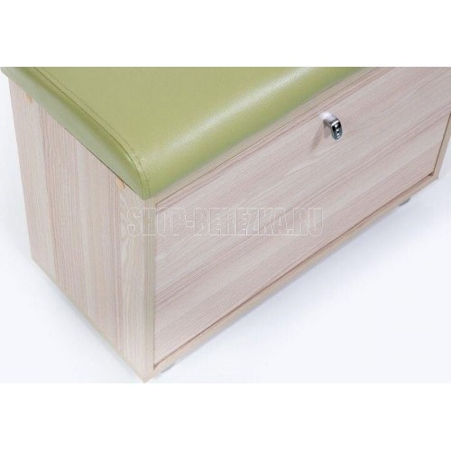 Лаконичный дизайн обувницы впишется в любой интерьер прихожей. Данный предмет мебели станет оригинальным и практичным дополнением. В конструкции тумбы предусмотрено отделение с полками для обуви. Крышка имеет мягкий наполнитель и качественный материал обивки экокожу, что доставляет больше комфорта во время обувания. Максимальная нагрузка на тумбу не должна превышать 90 кг. Габариты: ВхГхШ (460х295х624)мм. Стиль: Модерн. Материал каркаса: ЛДСП. Наполнитель: поролон. Обивка: экокожа. Цвет обивки: Салат С-105. Цвет корпуса: Ясень