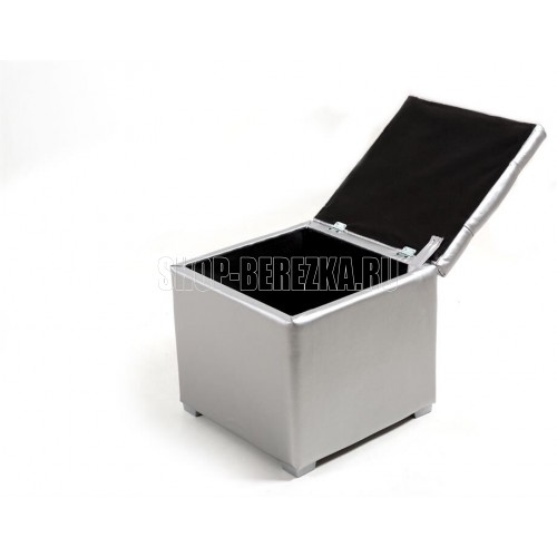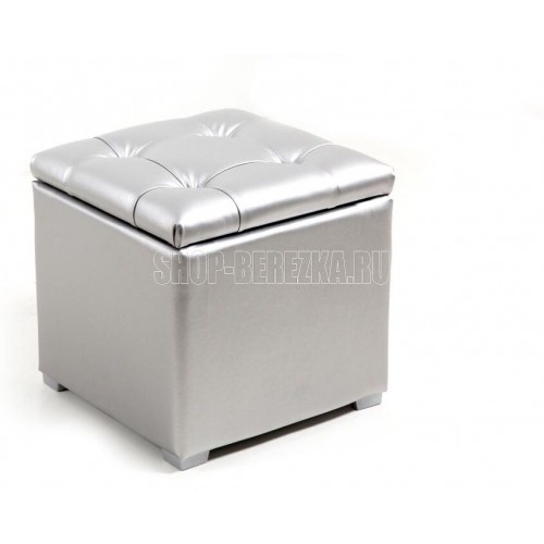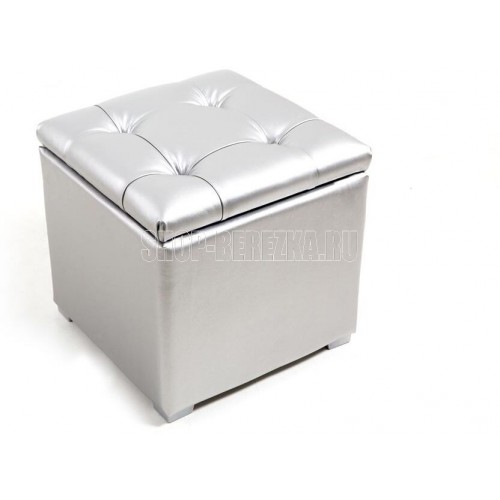 Удобный пуфик Классик для спальни или прихожей. Большой пуф, удобный, устойчивый с большим пространством для хранения и мягкой крышкой. Способ обтяжки сиденья пуфа - каретная стяжка. Размеры: 460х460х450 мм. Цвет экокожи: серебро (С-116).
