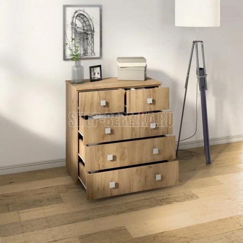 Практичный комод с пятью ящиками. Фасады и крышка комода выполнены из ЛДСП, корпус ЛДСП.Направляющие роликовые, Размер 770мм*800мм*394мм