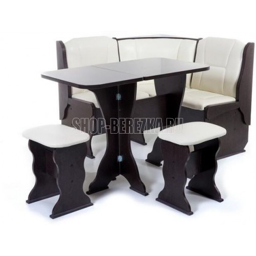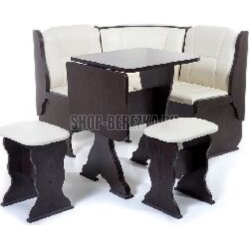 Кухонный уголок Нарцисс позволит оборудовать даже самую маленькую кухню максимально комфортно и удобно «для себя любимого». Все лучшее от мебельной фабрики Бител – качество, комфорт, ящики для хранения, столешница с покрытием пластиком, складной стол недорого в одном комплекте. На угловом элементе есть полочка. Этот комплект выполнен в варианте обивки Барнео Крем. Матовая экокожа, однотон. Цвет корпуса венге. В комплект кухонного уголка Нарцисс входит: стол раскладной СКР-1, два табурета Тюльпан, кухонная скамья с размером 1100 мм на 1100 мм, с внутренними ящиками под сидением. Габариты высота: 1100 мм. Габариты ширина: 1100 мм. Габариты глубина: 840 мм. Стиль: Классика. Материал каркаса: ЛДСП. Обивка: экокожа. Цвет обивки: crem. Ящик для хранения: да. Цвет корпуса: Венге.