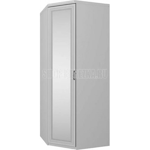 Шкаф угловой Валенсия 1DZ — угловой модуль с ростовым зеркалом на фасаде. Шкаф позволяет менять конфигурацию ансамбля шкафов «Валенсия», подстраивая его под изгибы помещения. В левом углу шкафа встроены штанга для плечиков и угловая антресольная полка. Дв