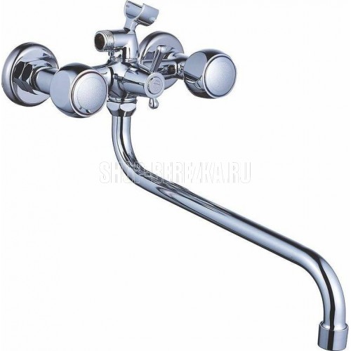 Смеситель универсальный с круглым изливом и переключателем для душа - Покрытие корпууса: хром - Кран-букса латунная с керамическими пластинами (угол поворота 90 градусов) - Шланг длина 1,5 м - С поворотнымизливом 300 мм - В комплекте с лейкой