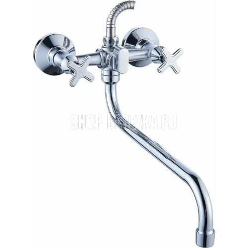 "Смеситель для ванны АНТЕЙ®, серия Кристи - Цвет: хром - Покрытие: никель-хромовое - Кран-букса: 1/2"" дюйма 20 шлиц, латунная с керамическими пластинами, угол поворота 90° - Излив: S-образный, длинный, поворотный, длина – 350 мм - Аэратор: пластиковый, съемный, внутр. резьба Ø22мм В комплекте: лейка для душа (Ø65мм, 1 реж., ABS-пластик), шланг 150 см (нержав. сталь), держатель для лейки (ABS-пластик), для монтажа прилагаются эксцентрики, декоративные накладки."