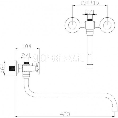 АНТЕЙ 247350-ANT Кристи Смеситель д/ванны с 2-мя рукоятками S-35см, с перекл. душа