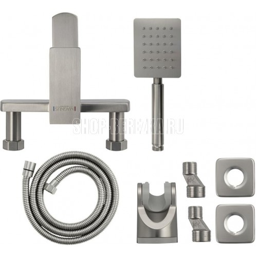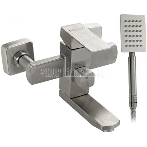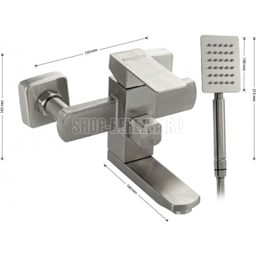 Смеситель матовый, из нержавеющей стали марки 304 в ванную / душевую комнату, с коротким изливом. Картридж d = 35 мм, ручка литая. Квадратный, большой корпус с дивертором м/к на корпусе, аэратор для экономии воды, чашки, гайки и эксцентрики из нержавеющей стали. Габаритные размеры: ширина 150 мм, высота 145 мм, длина 190 мм, длина шланга 150 см, высота лейки 215 мм. Вес - 2,63 кг, объём - 0,00783 м3. В комплекте корпус с изливом, дивертор, кронштейн, паспорт, крепёж, прокладки, лейка, шланг.