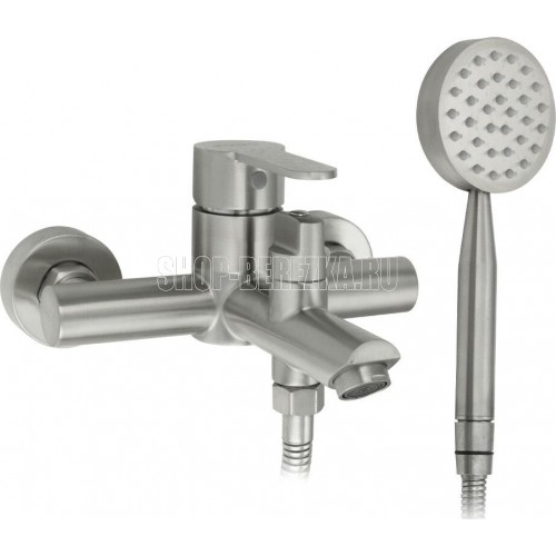 Смеситель матовый, из нержавеющей стали марки 304 в ванную / душевую комнату, с коротким литым изливом. Картридж d = 35 мм, ручка литая. Дутый, большой корпус с дивертором м/к на корпусе, аэратор для экономии воды, чашки, гайки и эксцентрики из нержавеющей стали. Габаритные размеры: ширина 150 мм, высота 100 мм, длина излива 120 мм, диаметр чашки 60 мм, длина шланга 150 см, лейка d = 85 мм. Вес - 2,00 кг, объём - 0,00680 м3. В комплекте корпус с изливом, дивертор, кронштейн, паспорт, крепёж, прокладки, лейка, шланг.