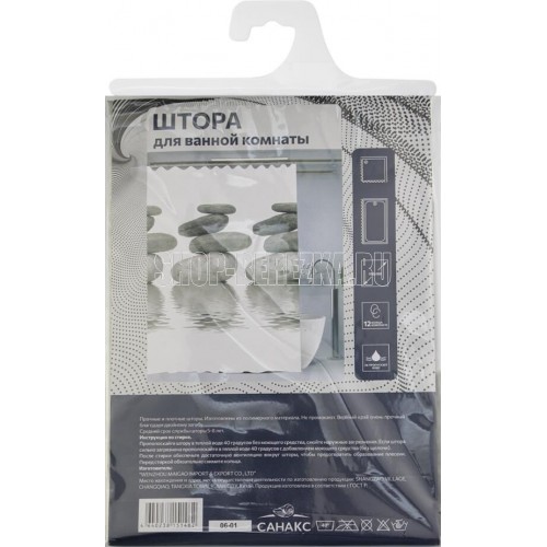 САНАКС 06-01 Штора с рисунком, большие камни, матовая, в ванную комнату, с кольцами, PEVA, 180 х 180 см.