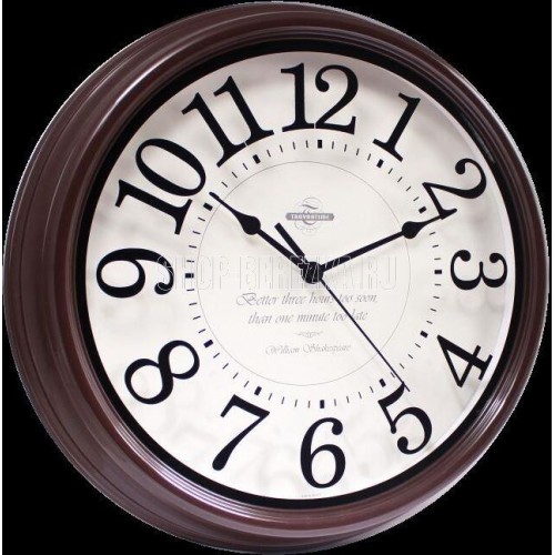 Часы настенные пластиковые, модель 88884872, диаметр 310 мм, стекло минеральное, пластиковый обод, цвет-коричневый. Циферблат на стекле.