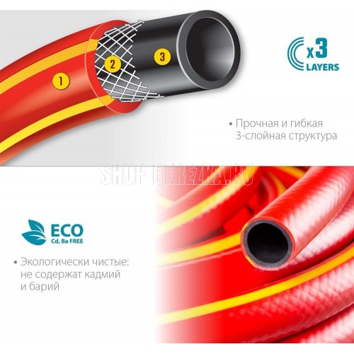 Диаметр, дюйм: 1/2. Длина, м: 20. Max давление, бар: 11. Тип: армированный. Армирование: диагональное. Допустимый перепад температуры, °С: от -20 до +50. Количество слоев: 3. Материал изделия: ПВХ.