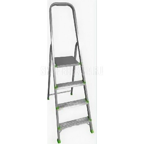 Стремянка 4 х ст бытовая стальная (окрашенная или с покрытием разных цветов) с алюминиевыми ступенями высота рабочей площадки 86 см вес 5.1 кг Максимальная нагрузка 150 кг.