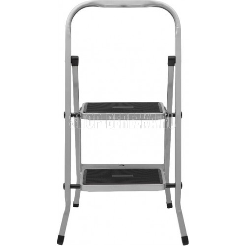 Стальная 2х ступенчатая стремянка для бытовых, ремонтных, строительно-монтажных, отделочных и садово-дачных работ. Стремянка имеет порошково-полимерное покрытие-защита от коррозии. Ступени с противоскользящими ковриками, что обеспечивает дополнительную безопасность при работе со стремянкой