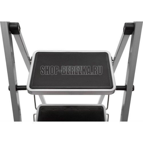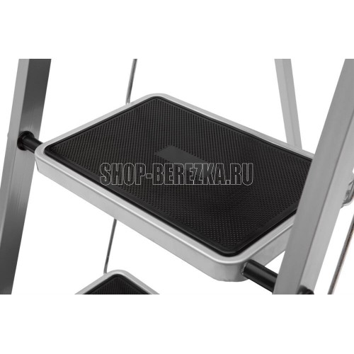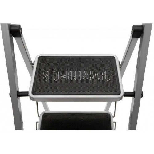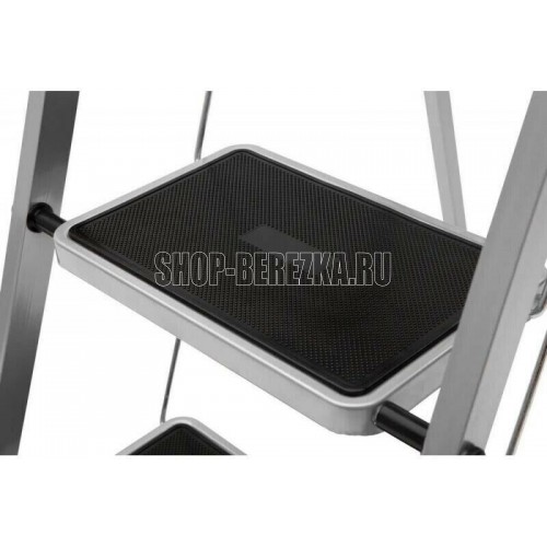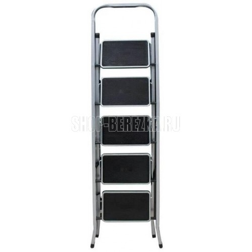 Стальная 5-ти ступенчатая стремянка для бытовых, ремонтных, строительно-монтажных, отделочных и садово-дачных работ. Стремянка имеет порошково-полимерное покрытие-защита от коррозии. Ступени с противоскользящими ковриками, что обеспечивает дополнительную безопасность при работе со стремянкой. Для большей стабильности и безопасности оснащена тканевым тросом (ремнем) - защита от раскладывания стремянки. Размер ступеней-30х20см. Макс. нагрузка-120 кг. Макс.достижимая рабочая высота-315см. Высота до верхней ступени 115см. Размер в открытом (разложенном) виде: 45,5*98*155см. Вес-8,23кг.