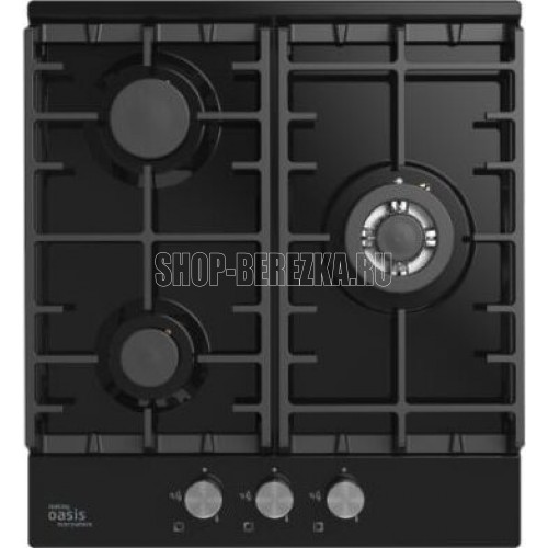 Размеры 46х52х9,7см.Металл, черный, чугунная решетка, автоматический розжиг, газ-контроль, 3 газовые конфорки, WOK-конфорка, ширина варочной поверхности 45см, Турция