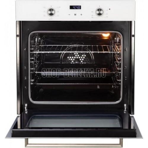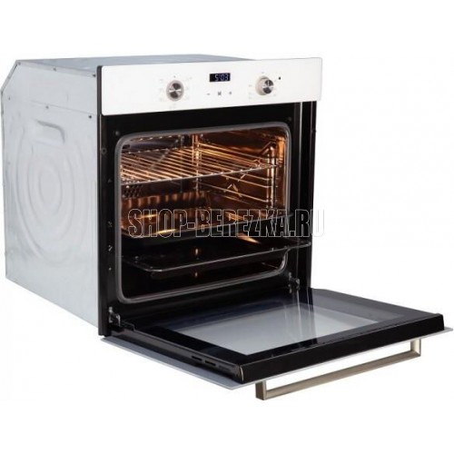 Духовой шкаф (электрический). Цвет: Белый, Цвет фурнитуры: серебристый + нержавеющая сталь, Материал фасада: закаленное стекло, Класс энергопотребления: A+, Управление: сенсор + утапливаемые переключатели, Программатор: электронный, Объем: 70 литров, Количество функций 7: гриль, верхний нагрев с конвекцией, нижний нагрев с конвекцией, верхний и нижний нагрев, верхний и нижний нагрев с конвекцией, 3D-конвекция, конвекция (разморозка), Мощность: 2100 Вт, Стекла дверцы: двойное съемное стекло, Панорамное внутреннее стекло Smart Eye, Холодный фронт, Очистка духовки: эмаль Easy Clean, Тангенциальное охлаждение, Хромированные боковые направляющие, Уровней установки противня: 5, Решетка, Противень: стандартный + глубокий, Габариты (ШхГхВ): 595*543*595 мм, Ниша для встраивания (ШхГхВ): 560*550*600, Длина шнура 1300 мм, Вес брутто 33,95 кг, Срок службы до 10 лет.