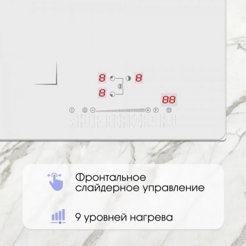 Общие параметры: 3 ИНДУКЦИОННЫХ ЭЛЕМЕНТА • 160 мм, 1200 Вт (бустер 1500 Вт) • 180 мм, 2000 Вт (бустер 2300 Вт) • 210 мм, 2300 Вт (бустер 2600 Вт) Общая мощность: 5800 Вт • Расширенная FLEX-зона 180х385 мм, 3000 Вт (бустер 3600 Вт) • Сенсорный слайдер • Инверторная технология нагрева