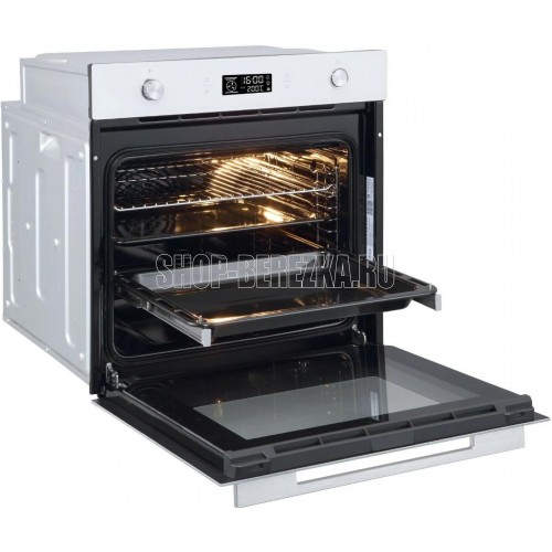 Духовой шкаф (электрический). Цвет: Белый, Цвет фурнитуры: нержавеющая сталь, Материал фасада: закаленное стекло, Класс энергопотребления: A, Управление: сенсор + утапливаемые переключатели, Программатор: электронный, Объем: 70 литров, Количество функций: 9, Функции: гриль, двойной гриль, гриль с конвекцией, нижний нагрев, верхний и нижний нагрев, верхний и нижний нагрев с конвекцией, 3D-конвекция, конвекция (разморозка), подсветка, Мощность: 3000 Вт, МАХ температура нагрева: 250°С, Стекла дверцы: тройное съемное стекло, Панорамное внутреннее стекло Smart Eye, Холодный фронт, Очистка духовки: эмаль Easy Clean, Тангенциальное охлаждение, Хромированные боковые направляющие, Телескопические направляющие, Уровней установки противня: 5, Решетка, Противень, Габариты (ШхГхВ): 595*575*595 мм, Ниша для встраивания (ШхГхВ): 560*570*600 мм, Вес брутто: 35,8 кг, Срок службы до 10 лет