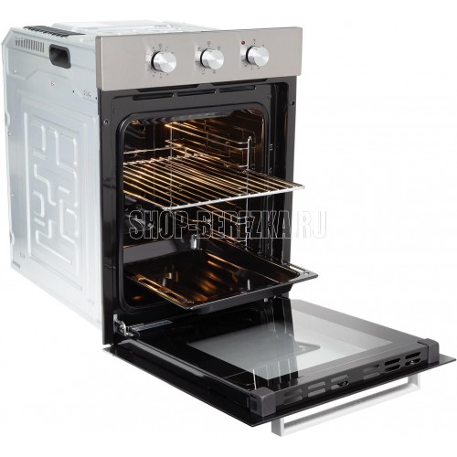 Духовой шкаф (электрический). Цвет: Серебро, Цвет фурнитуры: нержавеющая сталь, Материал фасада: закаленное стекло, Класс энергопотребления: A, Управление: поворотные переключатели, Объем: 51 литра, Количество функций: 6, Функции гриль, гриль с конвекцией, нижний нагрев, верхний и нижний нагрев, верхний и нижний нагрев с конвекцией, подсветка. Мощность: 2200 Вт, МАХ температура нагрева: 250°С, Стекла дверцы: двойное съемное стекло, Панорамное внутреннее стекло Smart Eye, Холодный фронт, Очистка духовки: эмаль Easy Clean, Тангенциальное охлаждение, Хромированные боковые направляющие, Уровней установки противня: 5, Решетка, Противень: стандартный, Габариты (ШхГхВ): 445*600*600 мм, Ниша для встраивания (ШхГхВ): 410*550*589 мм, Длина шнура: 1230 мм, Вес нетто: 23 кг, Вес брутто: 26 кг, Срок службы до 10 лет