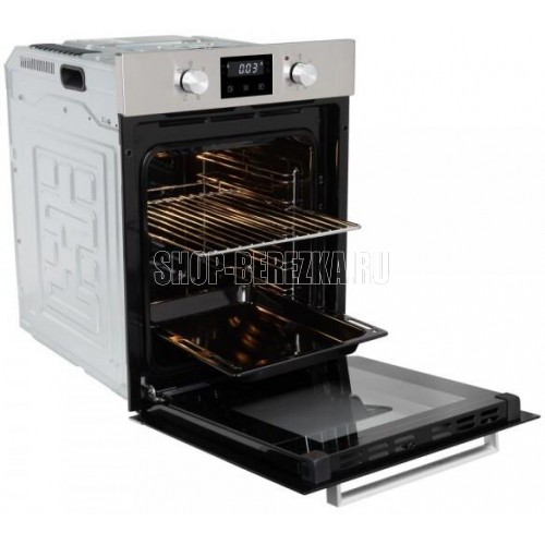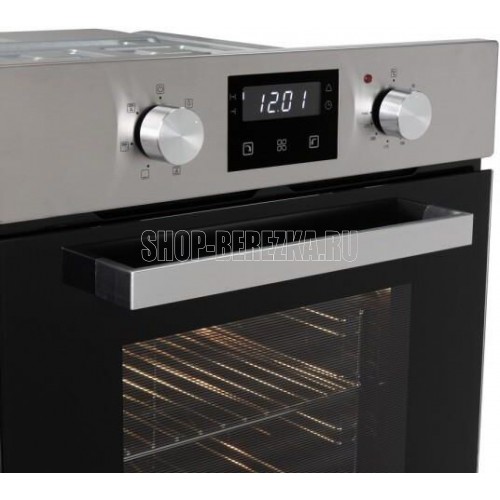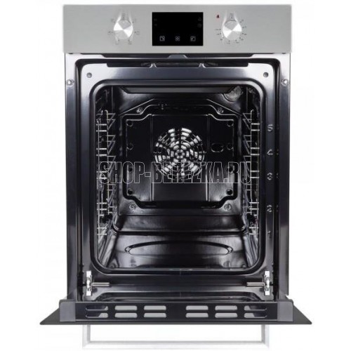 Духовой шкаф (электрический). Цвет: Серебро, Цвет фурнитуры: нержавеющая сталь, Материал фасада: закаленное стекло, Класс энергопотребления: A, Управление: сенсор + поворотные переключатели, Программатор: электронный, Объем: 51 литра, Количество функций: 6, Функции: гриль, гриль с конвекцией, нижний нагрев, верхний и нижний нагрев, верхний и нижний нагрев с конвекцией, подсветка. Мощность: 2200 Вт, МАХ температура нагрева: 250°С, Стекла дверцы: двойное съемное стекло, Панорамное внутреннее стекло Smart Eye, Холодный фронт, Очистка духовки: эмаль Easy Clean, Тангенциальное охлаждение, Хромированные боковые направляющие, Уровней установки противня: 5, Решетка, Противень: стандартный, Габариты (ШхГхВ): 445*600*600 мм, Ниша для встраивания (ШхГхВ): 410*550*589 мм, Длина шнура: 1230 мм, Вес нетто: 24,5 кг, Вес брутто: 26 кг, Срок службы до 10 лет.