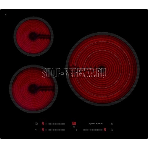 Стеклокерамическая варочная панель (Hi-Light). 3 конфорки. Управление мультислайдер. Общая мощность: 5700 Вт. 9 уровней настройки мощности. 1 конфорка с зоной расширения. Индикация остаточного тепла. Блокировка клавиатуры. Защита от перегрева. Таймер на каждую зону. Габариты (ШхГхВ): 590*520*60 мм. Ниша для встраивания (ШхГхВ): 555*495 мм. Длина шнура питания 875 мм. Цвет: Черный